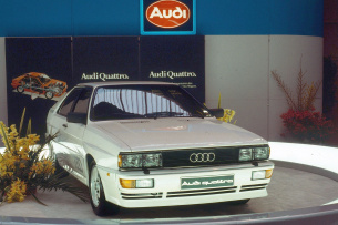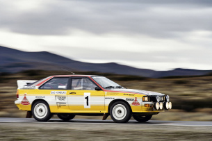 Der Audi Ur-quattro von 1980 katapultierte den Fünfzylinder in die Motorsportgeschichte: Turboaufladung, Ladeluftkühlung und permanenter Allradantrieb machten ihn zum technischen Vorreiter. 1982 gewann Audi mit dem Ur-quattro die Rallye-Markenweltmeisterschaft, 1983 folgte Hannu Mikkola mit dem Fahrer-Weltmeistertitel. Parallel präsentierte Audi den Sport quattro, dessen 306 PS starker Vierventil-Fünfzylinder als Basis für das Gruppe-B-Rallyeauto mit 450 PS diente. Weitere Meilensteine folgten: Walter Röhrl siegte 1987 auf dem Pikes Peak mit dem Audi Sport quattro S1, während US-Rennserien wie die Trans-Am und IMSA GTO die Leistungsfähigkeit des 2,1-Liter-Turbos mit bis zu 720 PS erlebten.