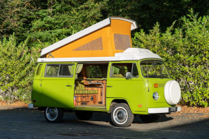 Der VW T2b Westfalia „Berlin“ ist ein echter Kult-Camper, noch dazu im damals schwer beliebten Erbswurst-Grün. Mittlerweile erscheint die Farbe doch sehr oldschool, aber das macht es natürlich irgendwie auch aus.