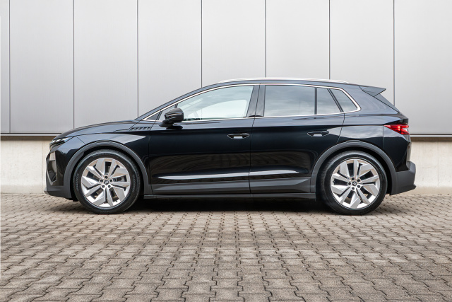 So fährt der E-Skoda nicht nur besser und sicherer, die reduzierte Bodenfreiheit sorgt obendrein auch optisch für einen satten Stand. Dank der präzisen Feinabstimmung der Federelemente auf die Serien-Dämpfer bleibt der Fahrkomfort natürlich uneingeschränkt langstreckentauglich und die Zuladung auf Serienniveau.